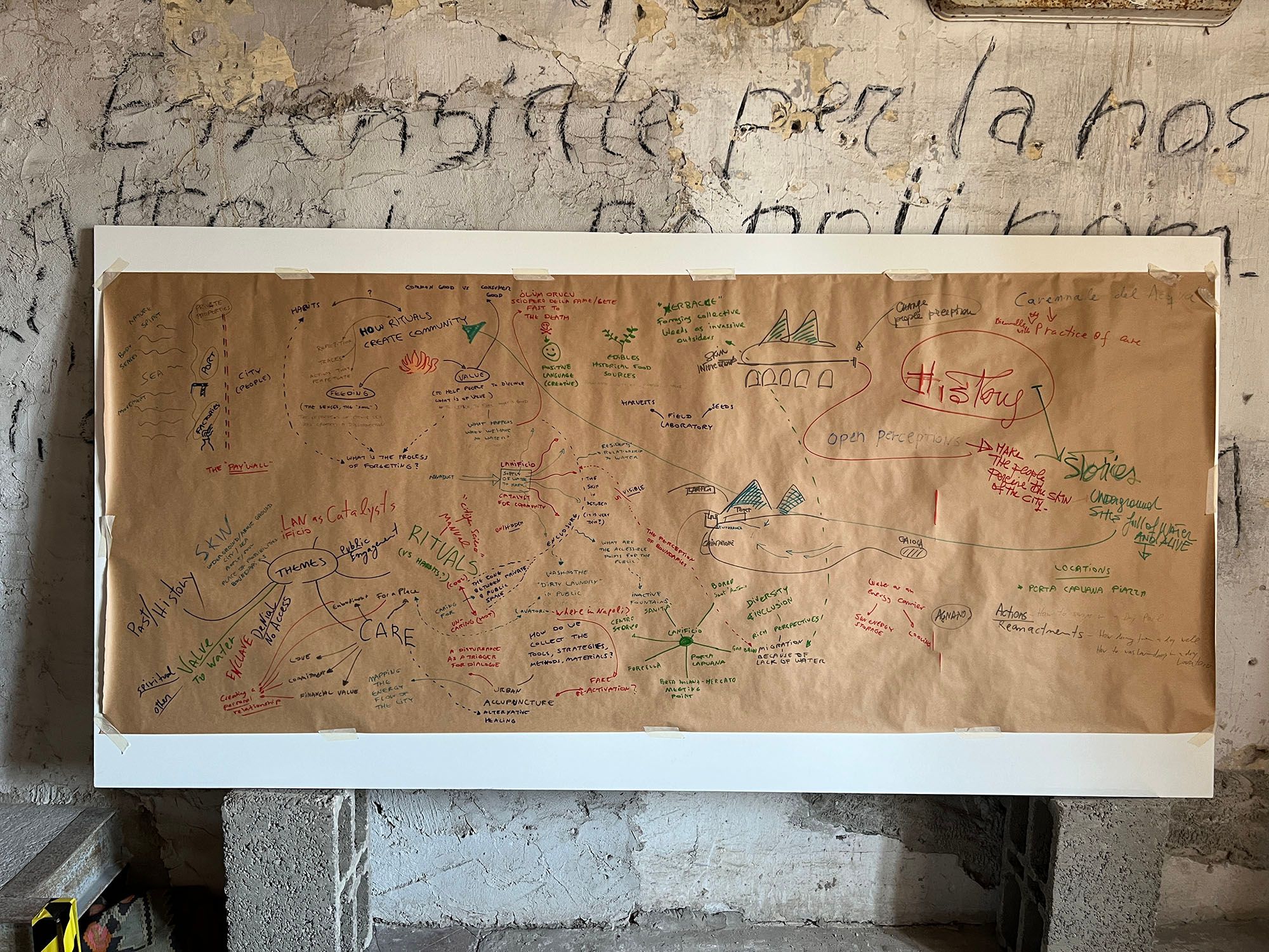 During the Preennale, in June and July 2024, Common Views led a two-week-long Commoning_Lab, focusing on water as a collectively shared resource, together with 15 local and international researchers, artists, and activists who work in the field of Commoning. Together, we explored effective and durable responses to a range of social and environmental issues relating to water., We engageding in a collaborative exchange that allowed for a horizontal discourse, in an atmosphere of inclusion and diversity, with participants sharing their knowledge and skill-sets and advancing Commoning perspectives for Naples’ urban water environment.