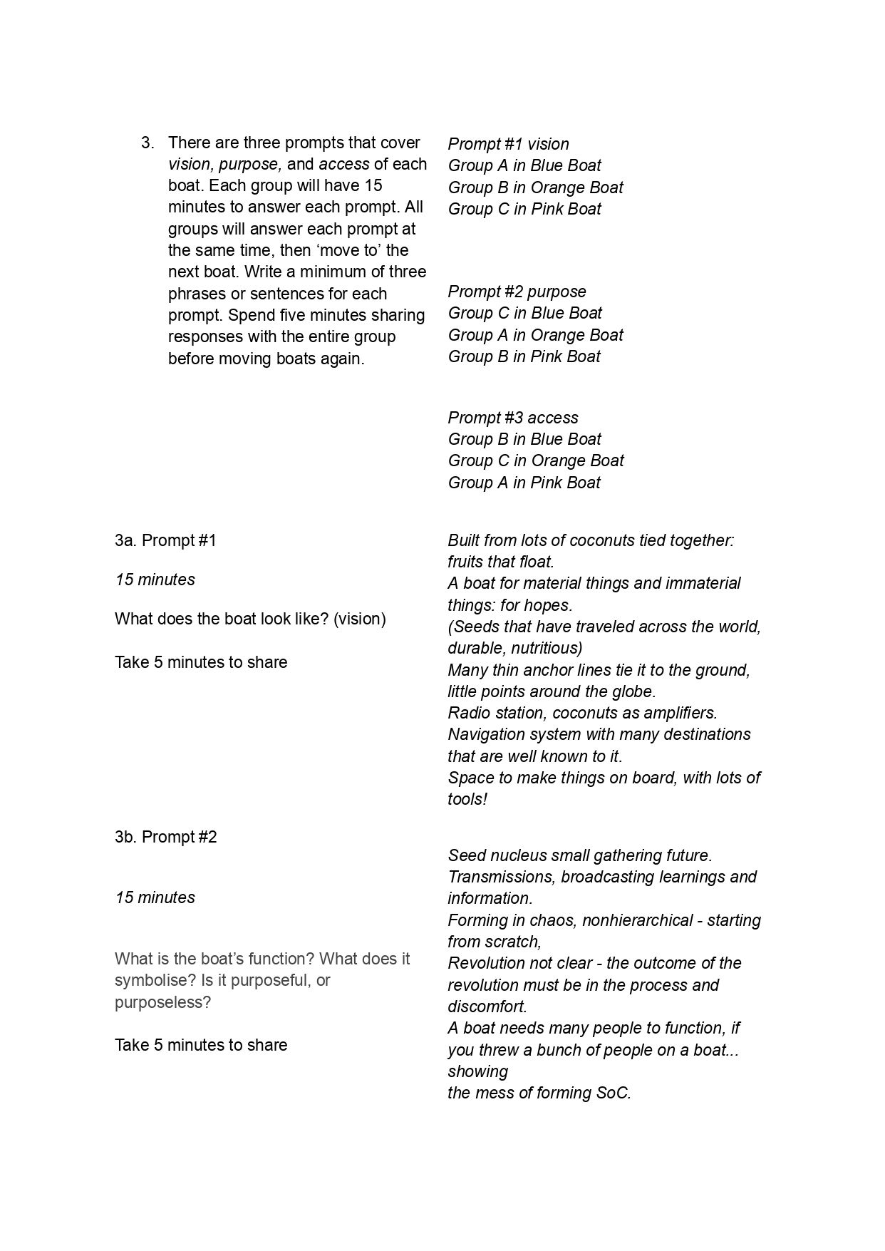 There is not a concrete way of doing it, and no right or wrong. These prompts are meant to spark reflection, dialogue, and experimentation, whether with yourself or collectively. Tweak them, build them up, or skip them as you please.