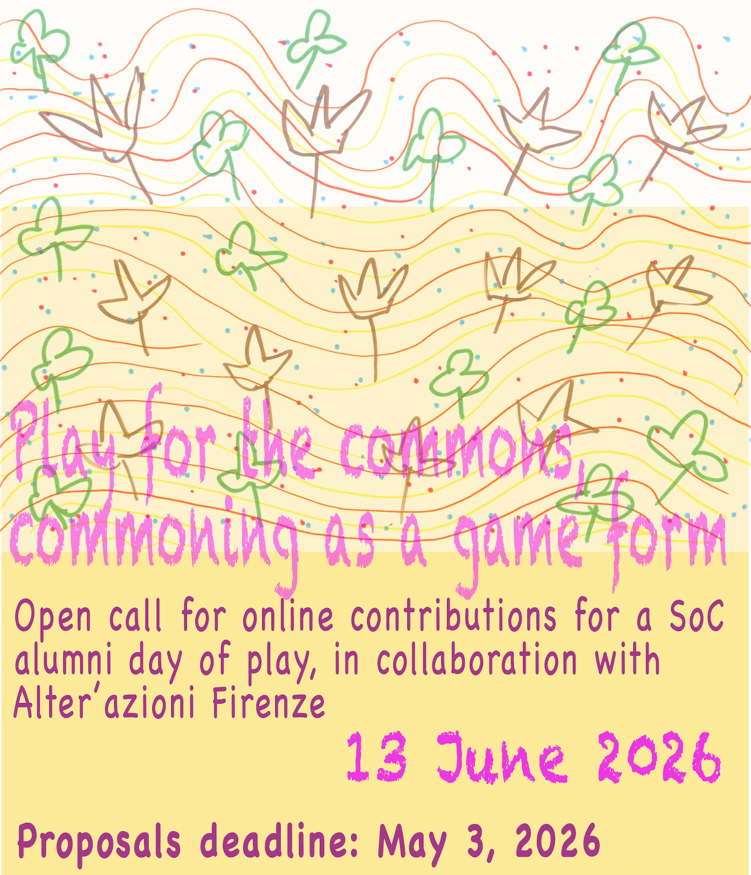 Open call for online contributions for a SoC alumn* day of play, in collaboration with Alter’azioni Firenze Find out more
